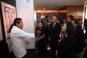 El senador subrayó la trayectoria de Filogonio Naxín, cuyas obras han sido exhibidas en el Museo Nacional de Antropología y en espacios internacionales. Reconoció además su labor comunitaria, al impartir talleres gratuitos en más de 20 comunidades oaxaqueñas, sembrando cultura desde la raíz.