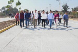En Zimatlán de Álvarez, inauguró la pavimentación con concreto hidráulico de la avenida Del Ferrocarril, obra que beneficia directamente a más de 14 mil habitantes y en la que se aplicaron aproximadamente 15 millones de pesos. El Gobernador subrayó que esta infraestructura garantiza movilidad segura para estudiantes, comerciantes y productores, además de formar parte de un paquete de más de 11 obras en la zona, entre ellas caminos, ampliación de red de agua potable y restauración de espacios históricos.