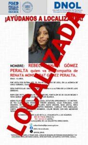 El primer caso corresponde a una mujer identificada como A.B.R., reportada como no localizada el 3 de enero de 2026. Tras recibir el aviso, la FGEO activó los protocolos de búsqueda, logrando su localización el 6 de enero del mismo año.