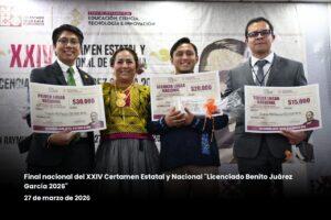 Las personas distinguidas en la fase final recibieron diploma de reconocimiento y estímulos económicos de 30 mil, 20 mil y 15 mil pesos para el primer, segundo y tercer lugar, respectivamente.