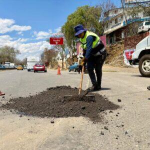 El Gobierno Municipal de Oaxaca de Juárez sigue realizando trabajos de bacheo en diferentes puntos de la capital.