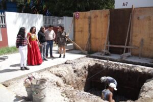 Durante la visita, también estuvieron presentes la Síndica Municipal Crecenciana Rojas, la Regidora de Educación, Juventud y Deporte Úrsula Claudia Gómez López, y la Directora de Educación Karina Zamora Villalobos. El recorrido permitió constatar los avances de la obra, que busca mejorar las condiciones para el desarrollo de actividades académicas, culturales y deportivas en beneficio de la comunidad estudiantil.